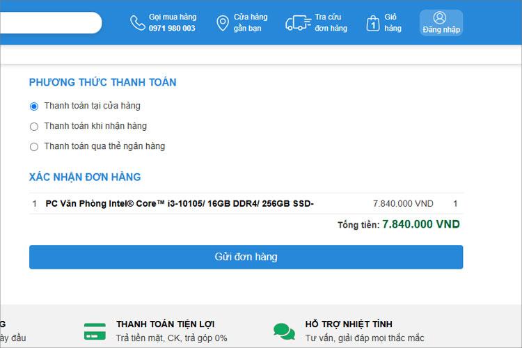 Và cuối cùng, bạn nhấn nút Gửi đơn hàng. Đơn hàng sẽ được bộ phận xử lý đơn hàng