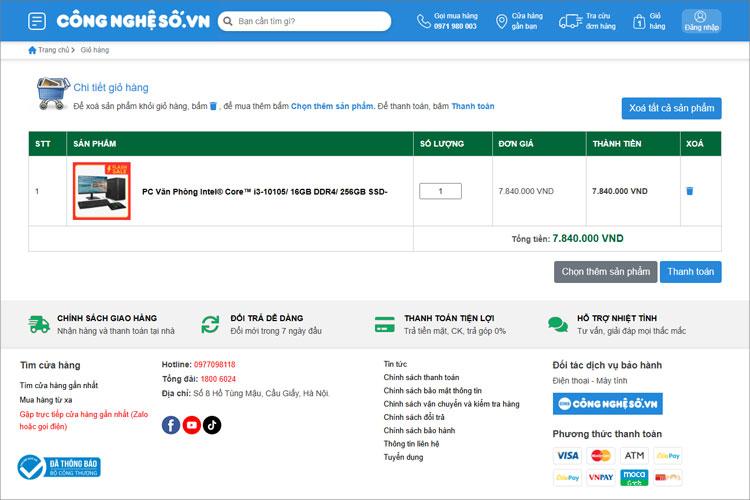 Để thuận tiện cho khách hàng nhất, Công Nghệ Số cho phép khách hàng khi mua có thể