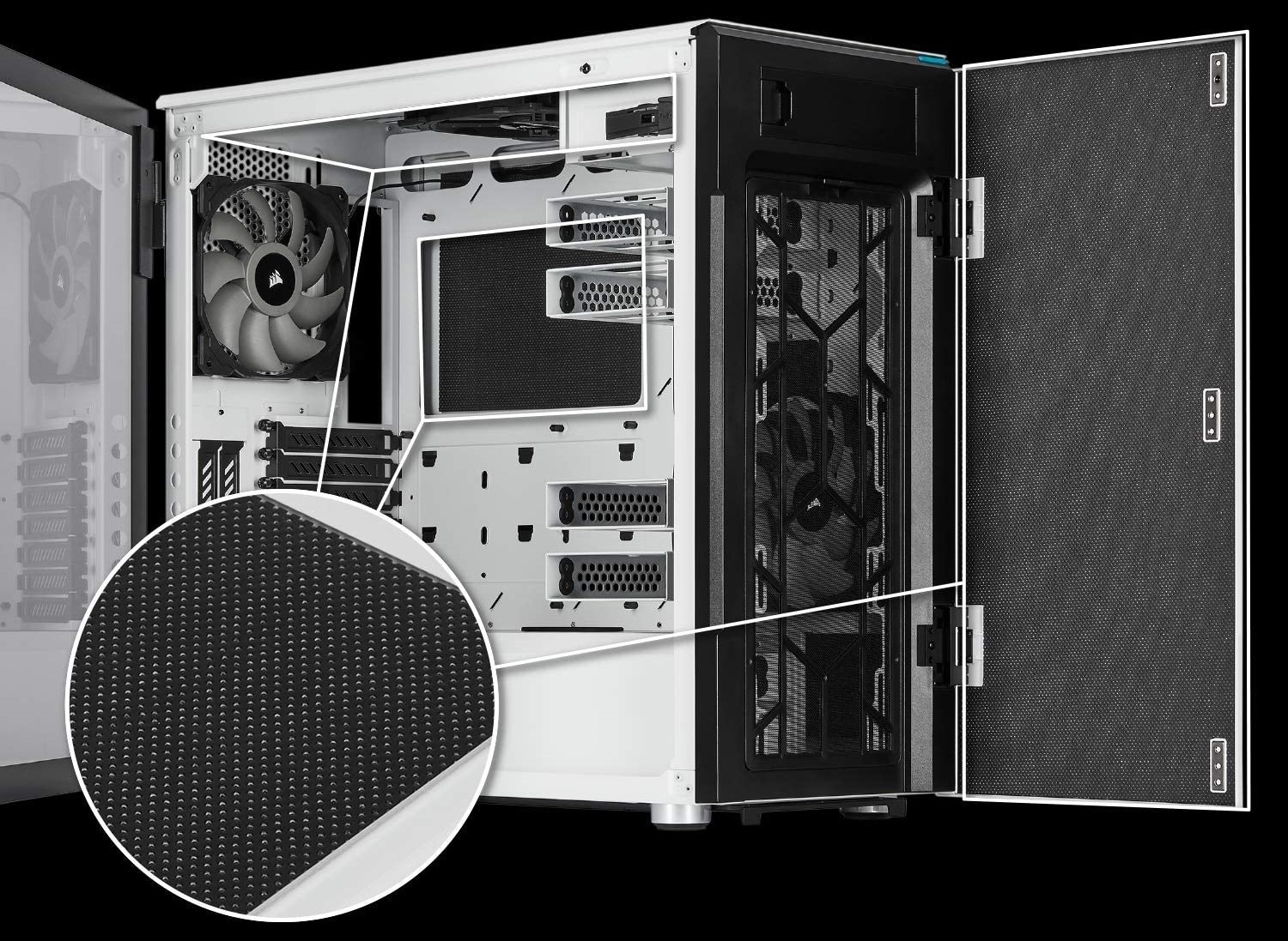 Sử dụng EVA foam ở các tấm bên, phía trước và trên mái làm giảm tiếng ồn từ tất cả các bộ phận hoặc bạn có thể chuyển sang tấm lọc bụi đi kèm khi muốn tối ưu luồng không khí. |