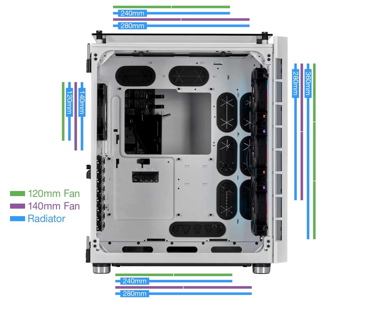 680X RGB với thiết kế làm mát hai buồng. Trong khi một buồng được làm mát tích cực với nhiều giá gắn quạt và bộ tản nhiệt, buồng kia cung cấp không gian rộng rãi cho việc định tuyến cáp, lưu trữ ổ đĩa và gắn PSU, giúp việc lắp ráp một hệ thống hoàn hảo dễ dàng hơn bao giờ hết.