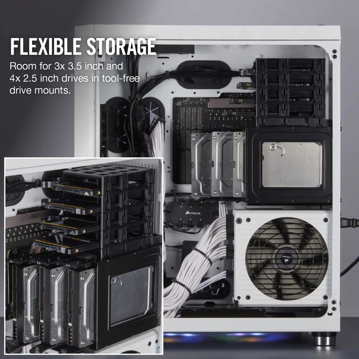 Khoang lưu trữ chuyên dụng cho tối đa ba ổ đĩa 3,5 inch và bốn ổ 2,5 inch trong giá gắn ổ đĩa để có cấu hình lưu trữ linh hoạt, dung lượng cao.