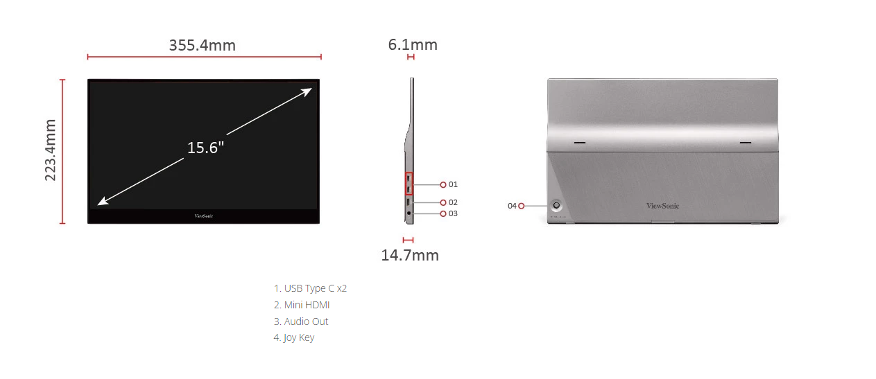Màn hình di động ViewSonic 15.6 Inch IPS FullHD USB 3.1 Type-C TD1655