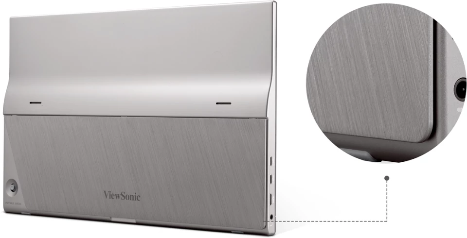 Màn hình di động ViewSonic TD1655 15.6 Inch được thiết kế với một tấm vỏ kim loại cùng chân đễ có thể gập lại giúp người dùng dễ dàng cho vào túi sách hoặc ba lô. |